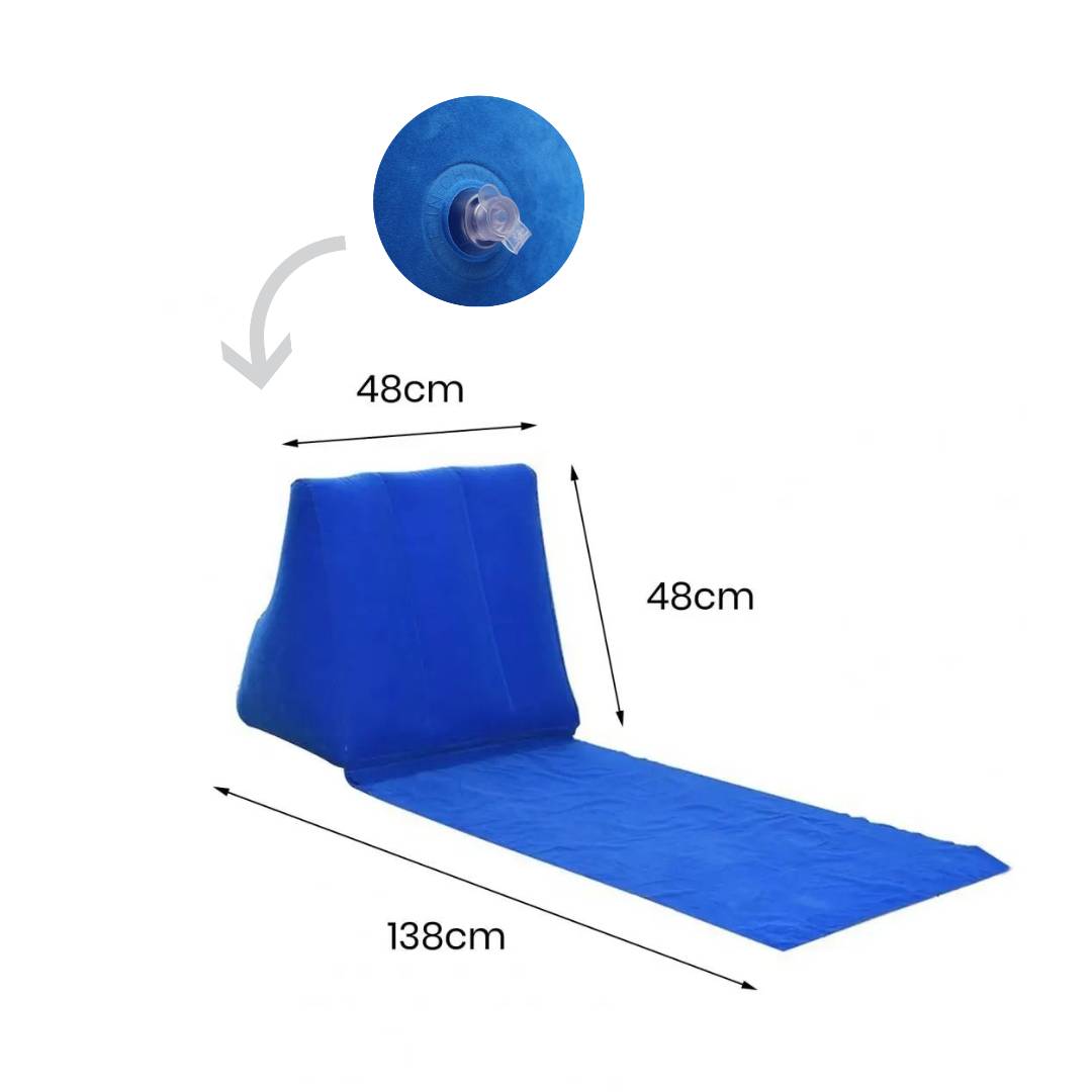 Vous apprécierez la facilité avec laquelle le coussin se gonfle, assurant ainsi une installation rapide et sans effort. Que ce soit pour lire un livre ou simplement se relaxer en bord de mer, le Coussin PRO offre un soutien optimal pour le dos, vous invitant au bien-être.