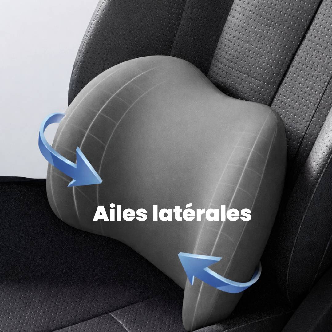 Le coussin se positionne directement contre le dossier du siège, au niveau du bas du dos. Aucun système de fixation complexe n’est nécessaire : la forme du coussin et le poids du corps suffisent à le maintenir en place. Il peut être utilisé aussi bien sur le siège conducteur que sur les sièges passagers avant ou arrière.